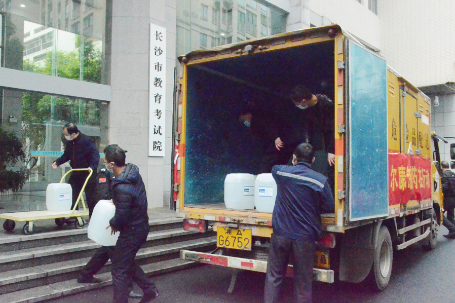 2吨酒精消毒液已送至长沙市教育局