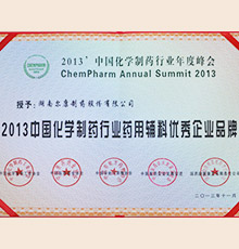 • 2013年中国化学制药行业药用辅料优秀企业品牌