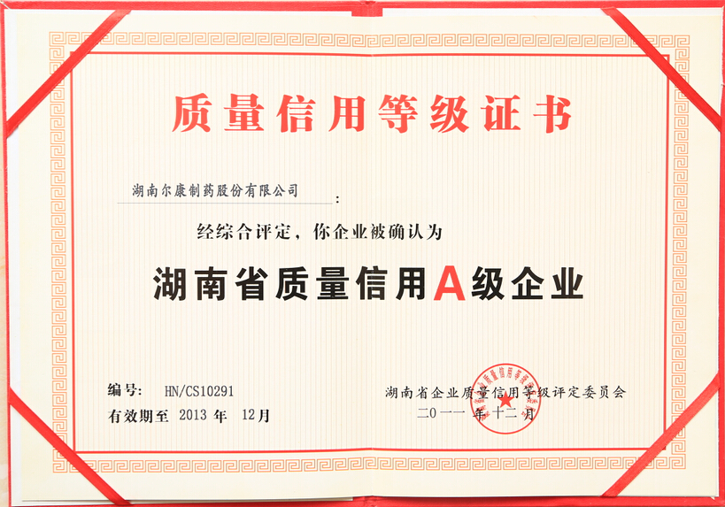 • 湖南省质量信用A级企业