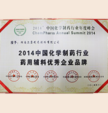 • 2014中国化学制药行业药用辅料优秀企业品牌