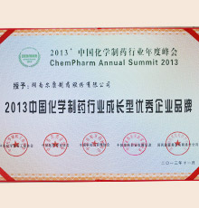 • 2013年中国医药行业成长型优秀企业品牌