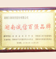 • 2013年湖南诚信百强品牌
