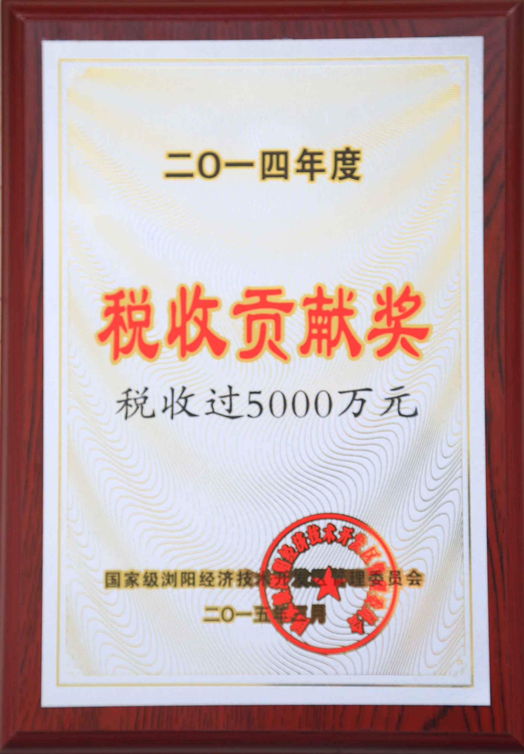 • 2014年度税收贡献奖(税收过5000万元)