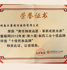 • 楚天杯 慧聪网制药行业十佳辅料品牌