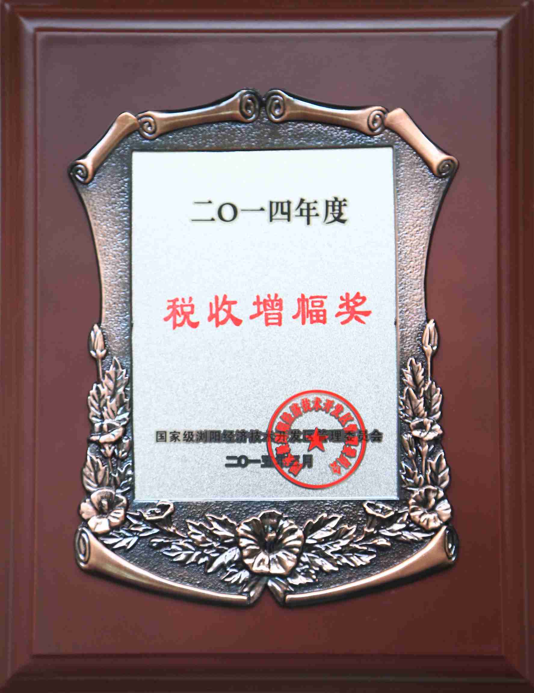 • 2014年度税收增幅奖
