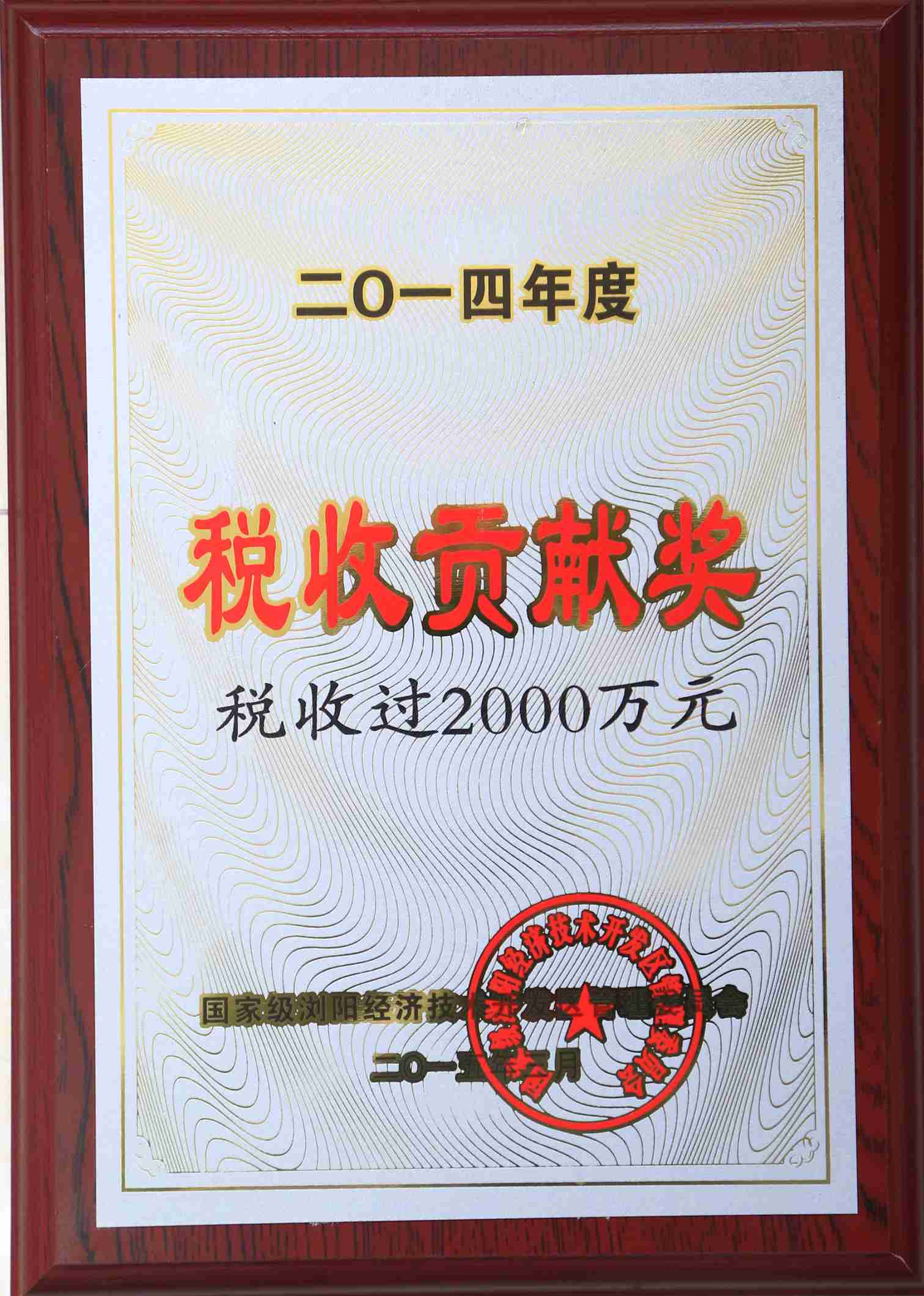 • 2014年度税收贡献奖(税收过2000万元)